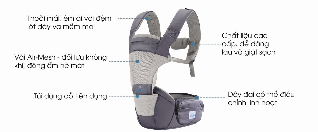 - Túi hông được tích hợp trên sản phẩm để bố mẹ có chỗ để những vật dụng nhỏ vô cùng tiện lợi