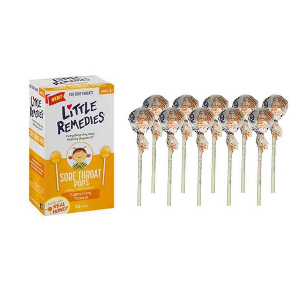 -Để làm dịu ho và đau họng,Một cây Kẹo mút ngậm ho Little Remedies Honey Pops cách 2-4 giờ