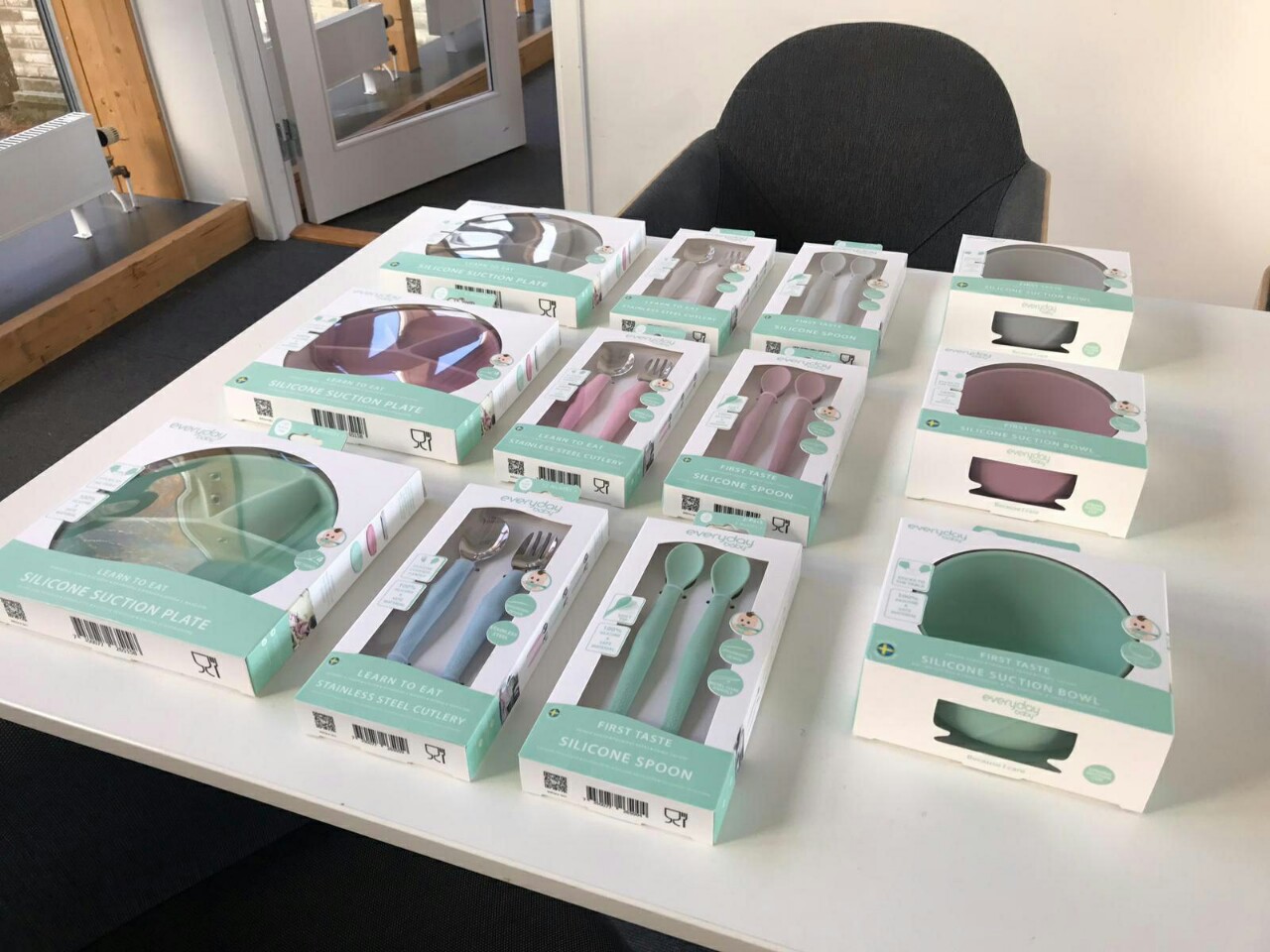 + Set muỗng nĩa- Dụng cụ tập ăn cho trẻ Everuday Baby gồm 3 màu : xám, hồng, xanh bạc hà.