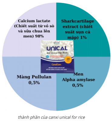 - Unical for rice còn được chiết xuất từ sụn vi cá mập – một thành phần vô cùng quý hiếm