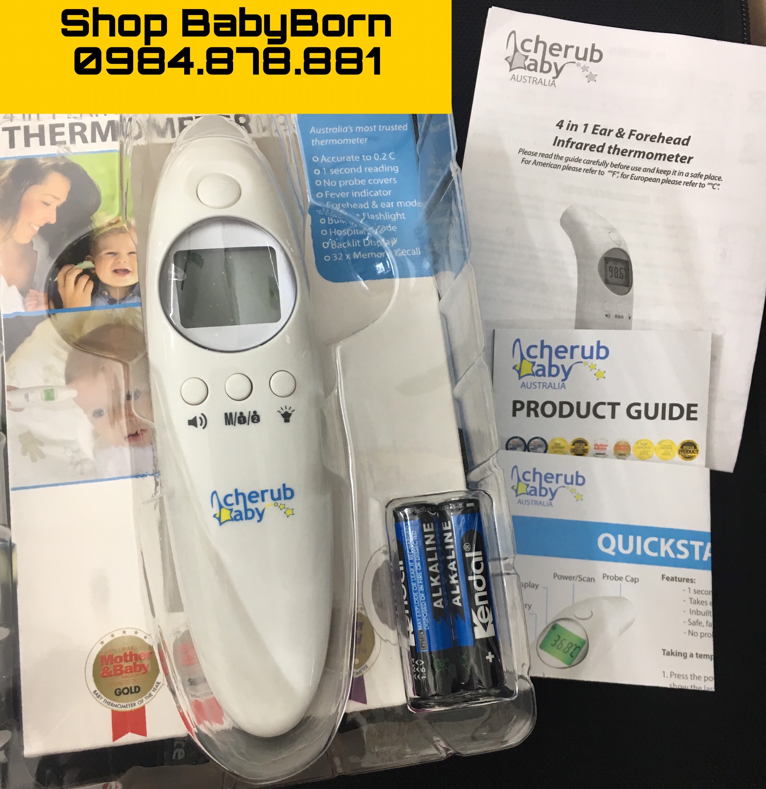 Được mệnh danh là nhiệt kế đáng tin cậy nhất tại ÚC.Vậy Nhiệt kế đo tai, đo trán bằng tia hồng ngoại CHERUB BABY 4 IN 1 có những công dụng nổi trội nào mà được khách hàng tin dùng đến vậy :