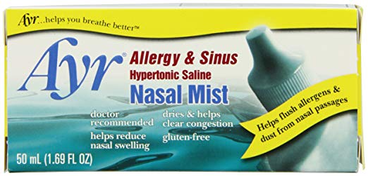 - Ayr Allergy & Sinus Hypertonic Saline Nasal Mist giúp loại bỏ các chất gây dị ứng và bụi bẩn khó chịu từ đường mũi của bé.