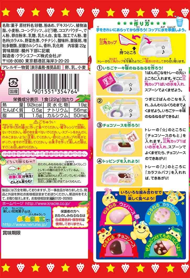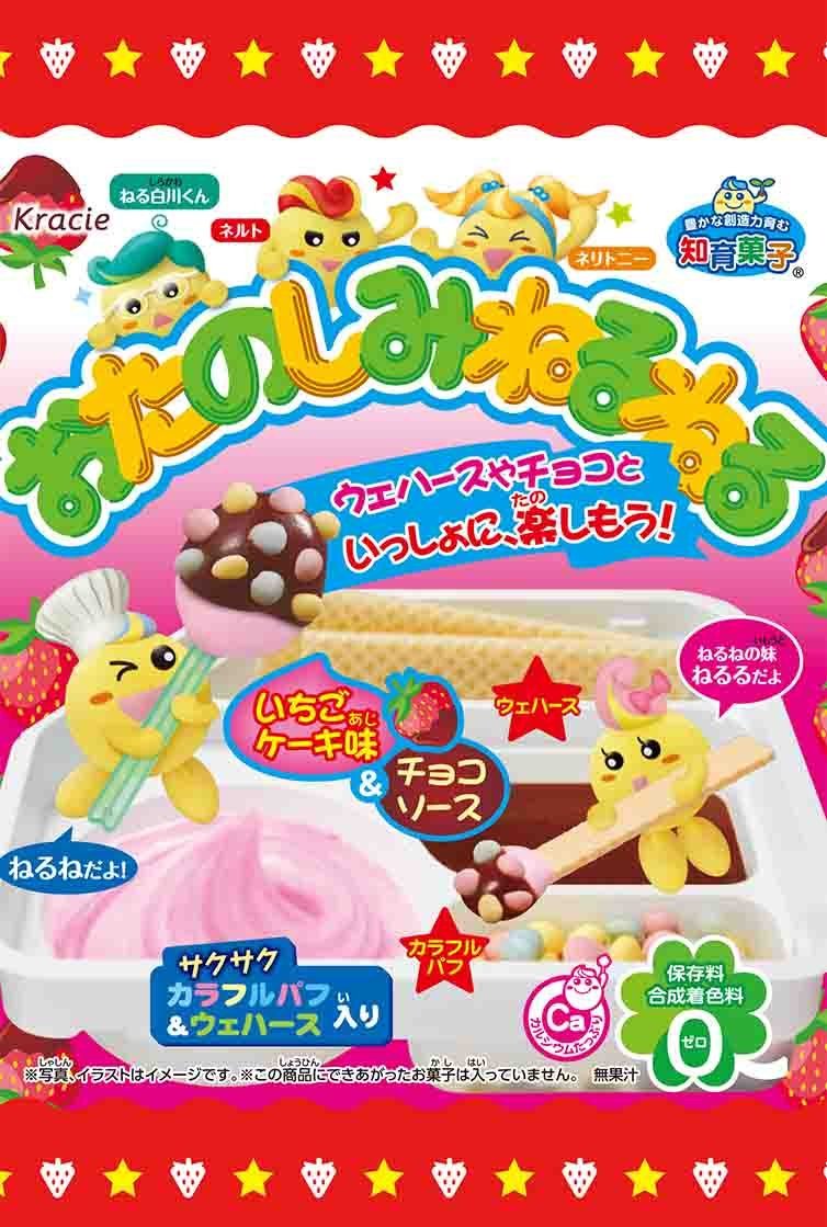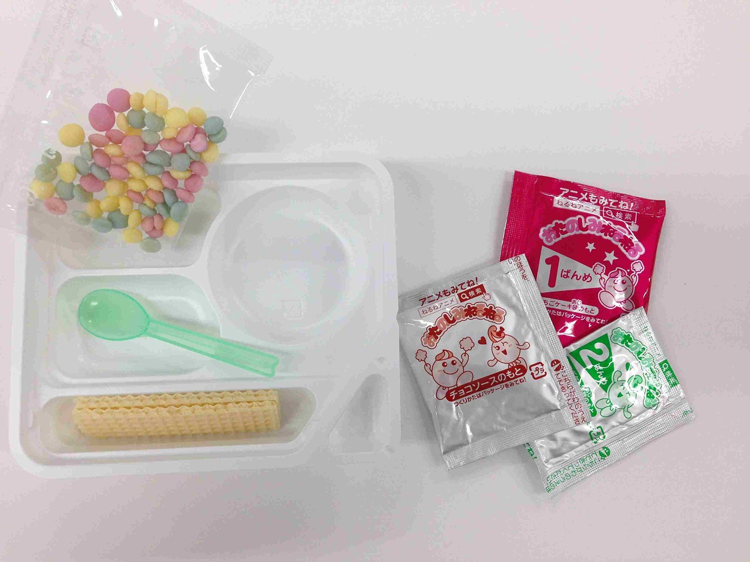 Mỗi phần bánh có chứa ba túi kem lỏng các vị dâu tây, socola, vani, và một túi hạt kẹo màu (màu thực phẩm an toàn được kiểm định thực phẩm chặt chẽ theo tiêu chuẩn Nhật Bản). Thông qua món ăn, bé sẽ thỏa sức trang trí lên thanh kẹo của mình với những lựa chọn được in trên bao bì hoặc tự sáng tạo nên những thanh kẹo đầy màu sắc của mình.
