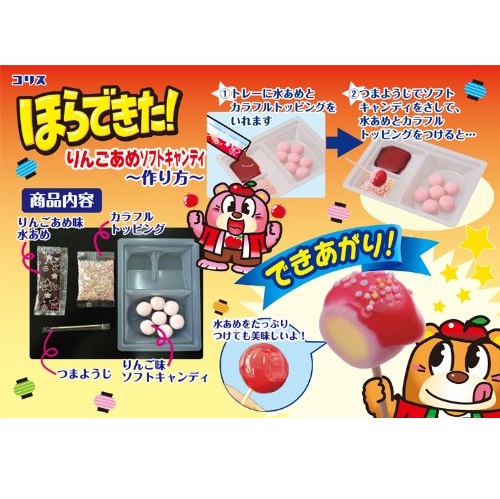Bộ làm kẹo táo xiên được làm từ các thành phần thiên nhiên như đường, xi rô táo, tinh bột, gelatin, dầu thực vật sẽ đem lại cho bé yêu của bạn những giờ phút vui vẻ cùng sự trải nghiệm thú vị khi tự tay làm những viên kẹo ngộ nghĩnh.