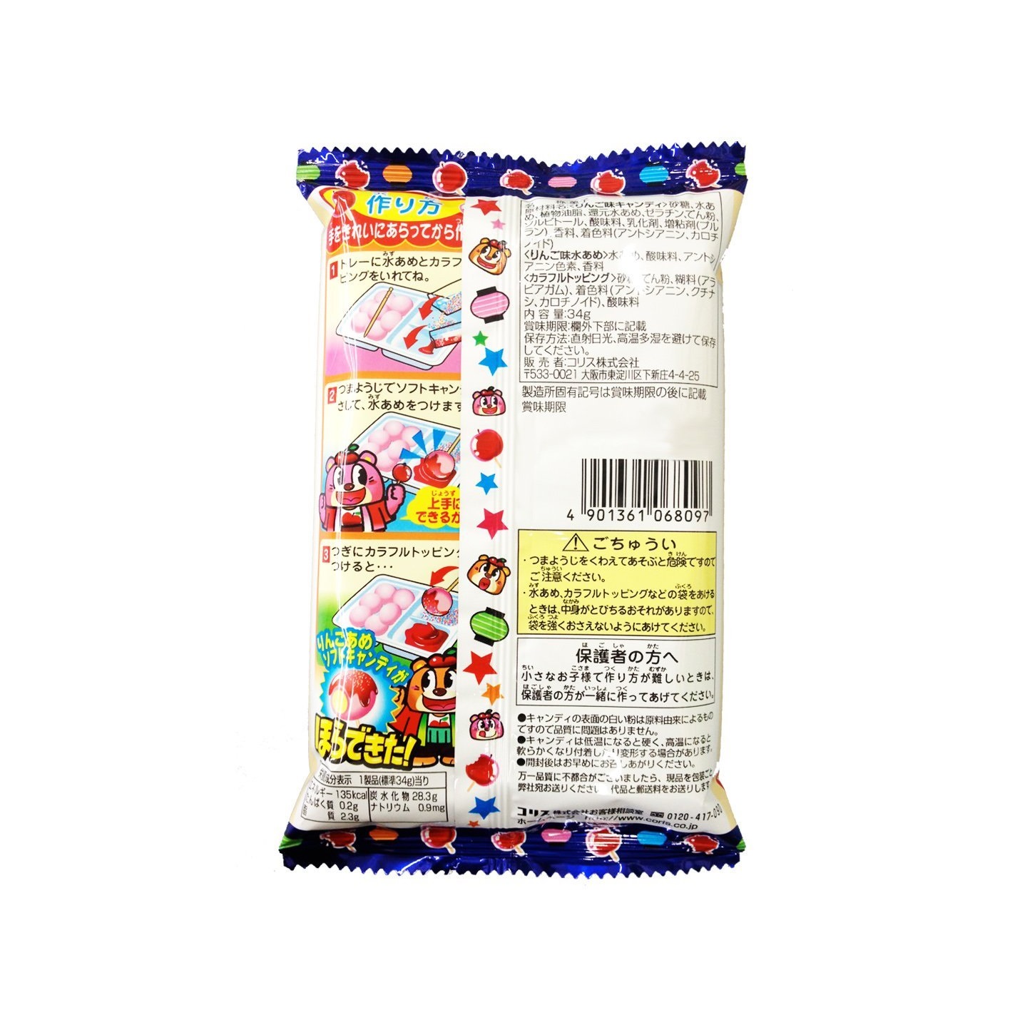 Gói sản phẩm bao gồm: 7 viên kẹo mềm màu hồng, 1 gói xi rô táo, 1 gói các hạt đường, 1 khuôn nhựa 3 ngăn để bé dễ dàng thao tác.