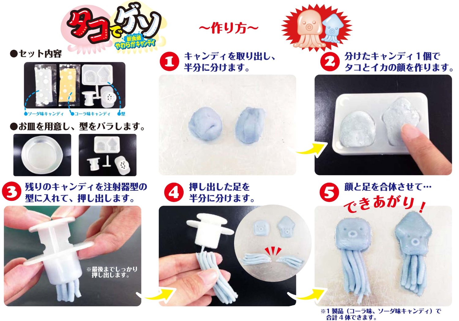 Những chú bạch tuộc với khuôn mặt ngộ nghĩnh, xích tua dài nhìn thật ngộ nghĩnh phải không các bé? Nếu mới chỉ thấy bạch tuộc ở trong những bộ phim hoạt hình, thì tại sao không thử ngay đồ chơi ăn uống kẹo bạch tuộc Octopus Candy Animation, để mang hai chú bạch tuộc vàng, trắng về với bé chỉ bằng vài thao tác cực đơn giản.