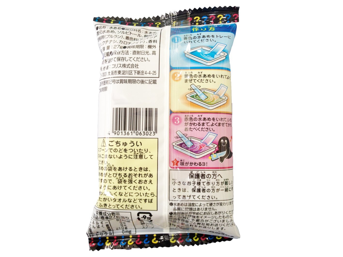 Sản phẩm sử dụng hoàn toàn các nguyên liệu từ tự nhiên, màu thực vật, tinh bột, đường, hương liệu tổng hợp, không phẩm màu, không chất bảo quản, tất cả đều tuân thủ quy định vệ sinh an toàn và vượt qua các cuộc kiểm nghiệm gắt gao của Nhật.