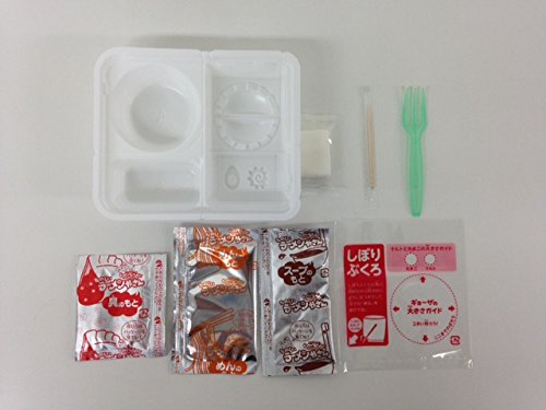 Sản phẩm gồm dụng cụ: một khuôn nhựa trắng, một thìa, một đôi đũa tí hon, và một bao bóng chỉ dẫn kích thước nặn bánh, làm trứng.
