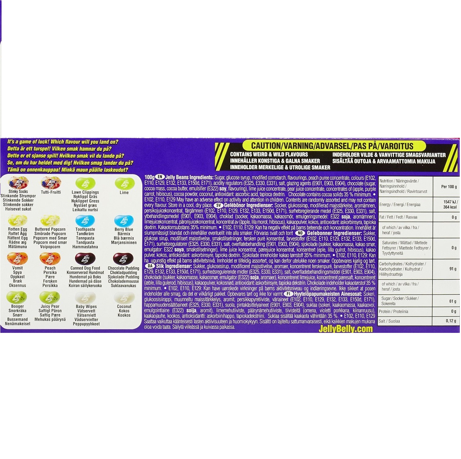 20 viên kẹo với 20 màu sắc khác nhauđược tạo theo hình mẫu hạt đậu, và mỗi chúng là những hương vị khác nhau. Có những hạt kẹo đậu có mùi hương của những loài trái cây quen thuộc như: chuối, dâu; hay mùi sữa dừa, cam thảo. Tuy nhiên trong đó cũng có cả những mùi hương mà bạn chưa bao giờ nghĩ tới nó sẽ trở thành hương liệu của kẹo, đó là: mùi của chồn hoang, con rết hay vật liệu xây dựng như vôi.