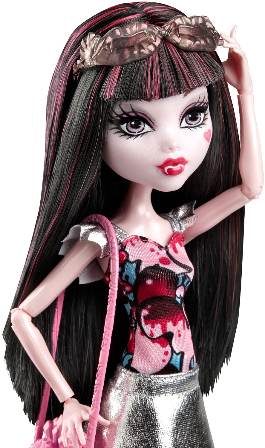 Draculaura là con gái của Dracula, dù cô đã 1600 tuổi nhưng vẫn trẻ trung như một công chúa monster bất tử. Draculaura là 1 thành viên của gia đình ma cà rồng nhưng rất sợ máu và cô ăn chay, công chúa không nhìn thấy bóng mình trong gương. Cô mặc trang phục thật năng động và thoải mái để tới buổi nhạc kịch ở thành phố ánh sang cùng các bạn trong ngôi trường đào tạo quái vật monster high. Cùng bổ sung thêm bộ sưu tập về ngôi trường hắc ám nổi tiếng này nhé các bé!