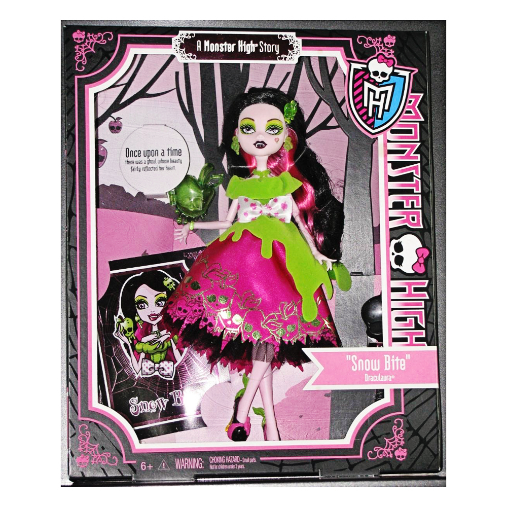 Sản phẩm lần này, Babyborn.vn mang tới cho bé yêu nhà bạn là cô Búp bê Monster High Snow Bite Draculaura cực kì quyến rũ và dễ thương. Mặc dù là Draculaura nhưng cô ấy lại ăn chay, sợ hãi khi nghe tới từ máu và sẽ ngất khi nhìn thấy nó. Như tất cả các cô búp bê khác, Draculaura sẵn sàng chia sẻ bí mật của mình với bé. Cô ấy cũng là một tín đồ của thời trang với hàng loạt bộ sưu tập quần ao, giày dép và bông tai. Bé có thể chơi, trò chuyện với cô ấy, thay các trang phục cho phù hợp với các buổi tiệc tùng, dã ngoại, shopping cùng với những người bạn Búp bê khác. Cô ấy có một túi sách thời trang sành điệu, một vali đựng đồ vô cùng dễ thương, 4 đôi guốc với 3 màu sắc tươi sáng cực đẹp, cùng với những phụ kiện đi kèm như: kính mắt, vòng tai, đôi bông tai, cặp mái vô cùng xinh xắn.
