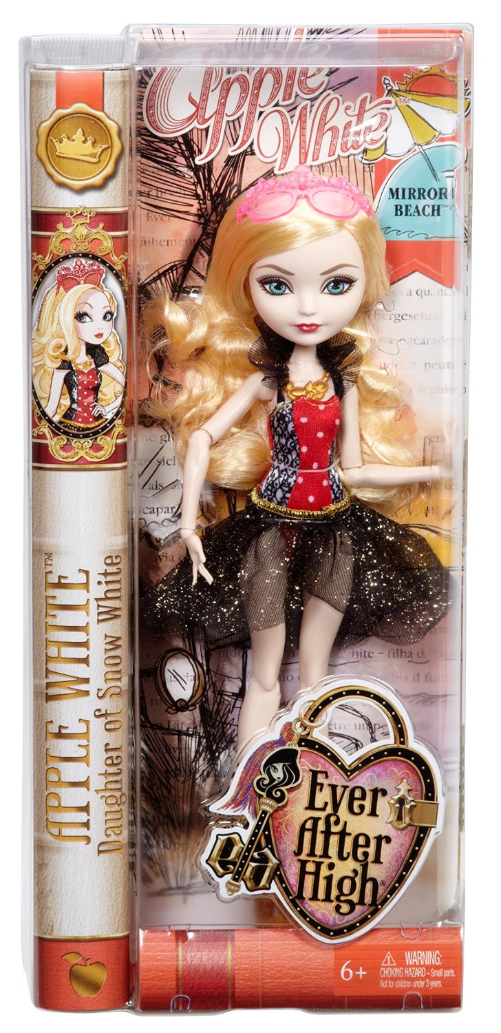 Ở phiên bản này, công chúa Apple White trên đường tới dự lễ hội Mirror Beach, mái tóc vàng, làn da trắng thừa hưởng từ mẹ Bạch Tuyết sẽ là điểm đặc biệt khiến công chúa không thể bị lẫn. Sản phẩm bao gồm 1 công chúa. Túi xách xinh xắn, chìa khóa vận mệnh Ever After High, bookmark đi kèm chứa thông tin và cuộc sống của công chúa, hãy cùng khám phá nha các bé!