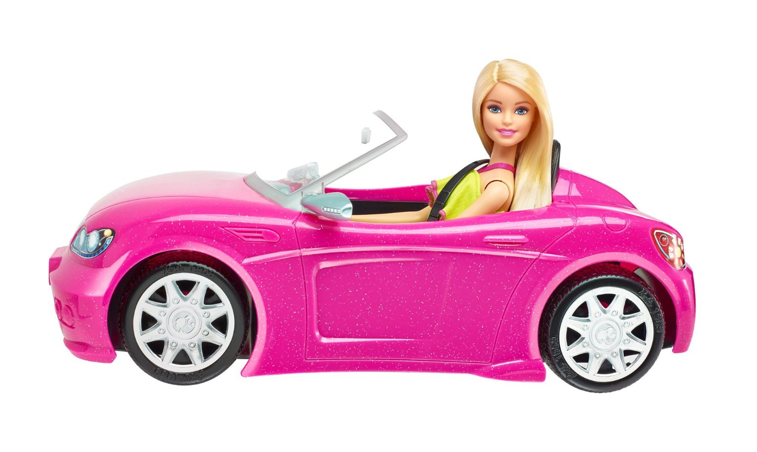 Barbie DGW23 Glam Convertible, Pink là một chiếc siêu xe mui trần hiện đại đời mới nhất. Xe màu hồng nữ tính – là màu yêu thích của búp bê Barbie, thân xe còn được ráp hàng ngàn kim tuyến óng ánh, chắc chắn khi sử dụng xe đi dạo phố Barbie sẽ cực kì nổi bật. Bốn bánh xe có lốp bằng cao su đen, các trục nối bánh xe với thân xe được thiết kế tỉ mỉ khiến chiếc xe có thể lăn bánh như thật.