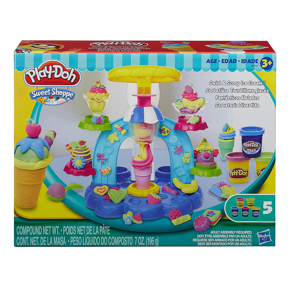Từ kem ốc cho tới kem cốc, kem ly thuyền đều có thể được các bé tự tay làm ra bằng bộ đồ chơi bột nặn Play Doh máy làm kem cầu vồng (Swirl & Scoop Ice Cream). Sản phẩm sẽ là món quà thú vị cho các bé thỏa sức sáng tạo, khéo léo kết hợp giữa tư duy về phối hợp màu sắc và tính kiên nhẫn khi tạo ra những chiếc kem giống y như thật – đưa bé vào thiên đường của các loại kem.