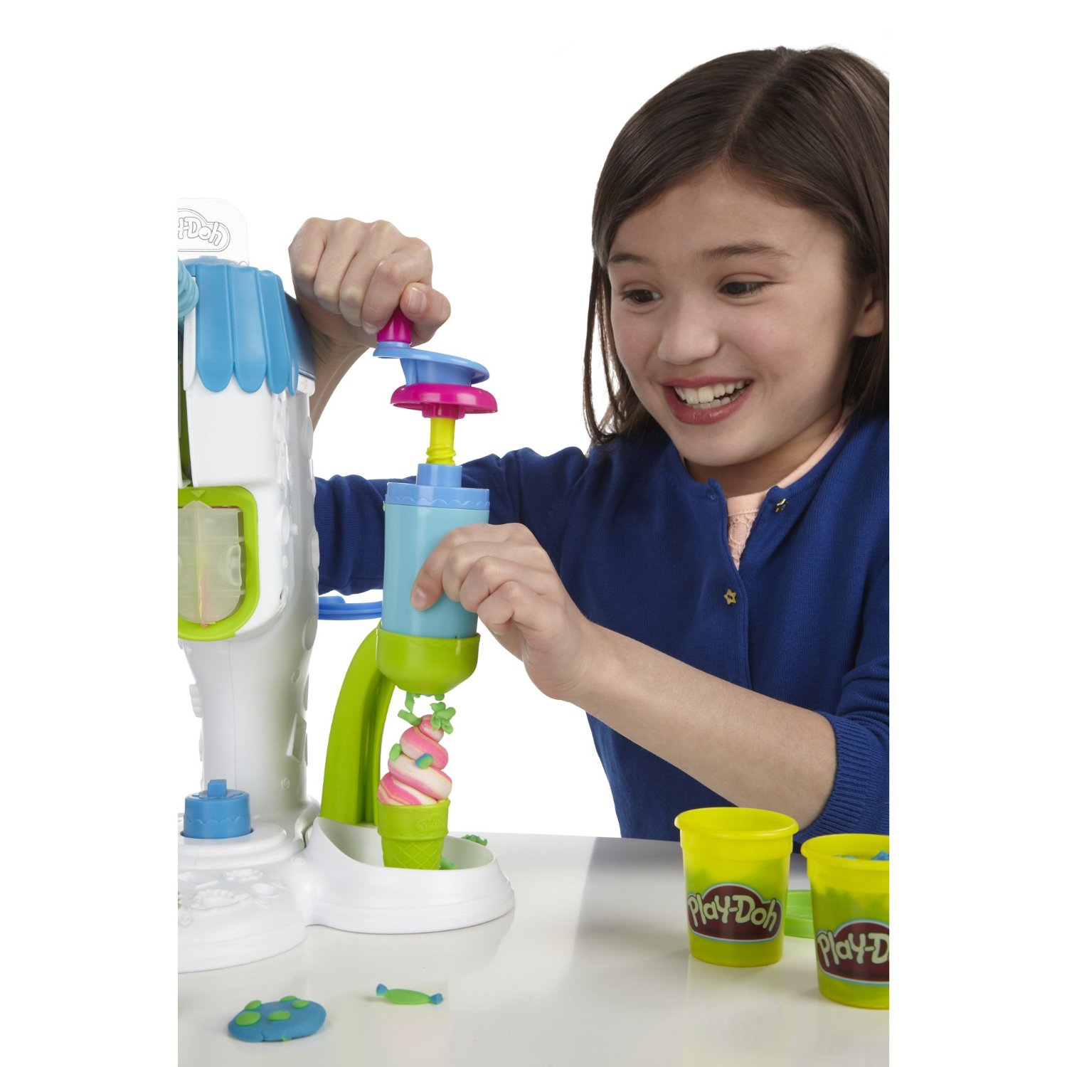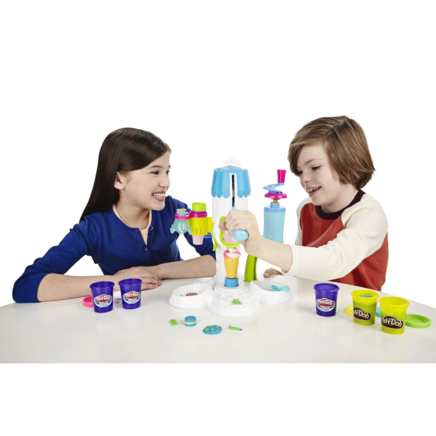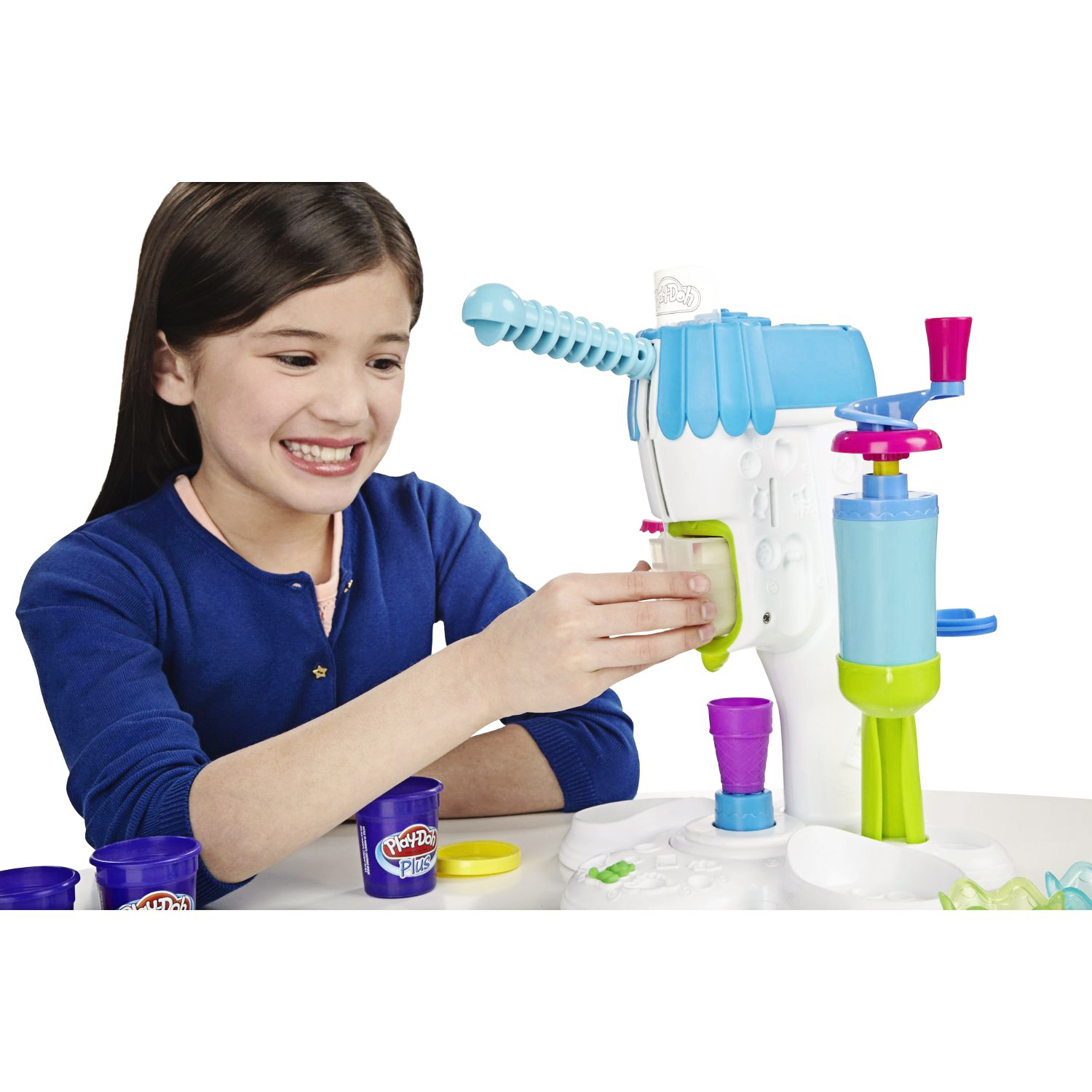 Gần giống như bộ sản phẩm máy làm kem thần kỳ, tuy nhiên bộ đồ chơi máy làm kem lý tưởng được thiết kế hoàn hảo hơn, giúp bé có thể “sản xuất” được những ly kem tuyệt vời một cách dễ dàng nhất. Bộ sản phẩm bao gồm 5 hộp đất nặn, 2 máy làm kem, 1 máy làm bánh trang trí, bộ ly và thìa.