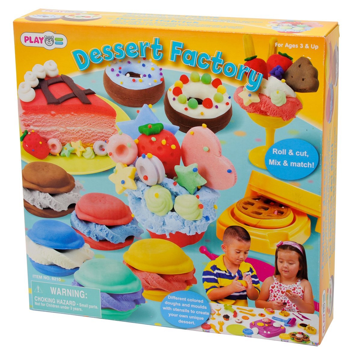 Sở hữu bộ Playgo Desserts Factory bạn sẽ bị choáng ngợp bởi có quá nhiều dụng cụ hỗ trợ bé yêu bao gồm bên trong với 5 hộp nặn Playgo, 1 khuôn lớn bao gồm các khuôn hình nhỏ tạo các loại bánh quy và hình trang trí; khuân tạo hình bánh nướng, khuôn tạo bánh kem; khuôn tạo hình bánh donut, con lăn, máy phun kem, thìa, dĩa, dao cắt, ly…