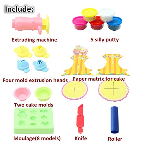 Fajiabao 3D Play Dough Tools with Molds and Models Cupcake giúp bé có thể tạo ra mọi thứ mà bé tưởng tượng bằng những thao tác cực đơn giản. Đầu tiên bé sẽ định hình trong đầu hình ảnh chiếc bánh bé muốn làm, lựa chọn màu sắc và tạo ra màu sắc bằng cách pha trộn nếu cần, mỗi màu sắc thể hiện một hương vị khác nhau, sự pha trộn giữa các màu sắc thể hiện sự tư duy, phân tích và óc quan sát của bé. Dùng khuôn tạo hình bánh Cupcake, sử dụng máy đùn, mẫu trang trí để biến những chiếc bánh trở nên sinh động và hấp dẫn hơn. Bước cuối cùng là sắp xếp, trưng bày tạo ra một bữa tiệc bánh ngọt tuyệt vời trên tháp giấy 2 tầng lung linh, trông nó sẽ như một thành quả kiệt tác để bé có thể chiêm ngưỡng và tự hào.