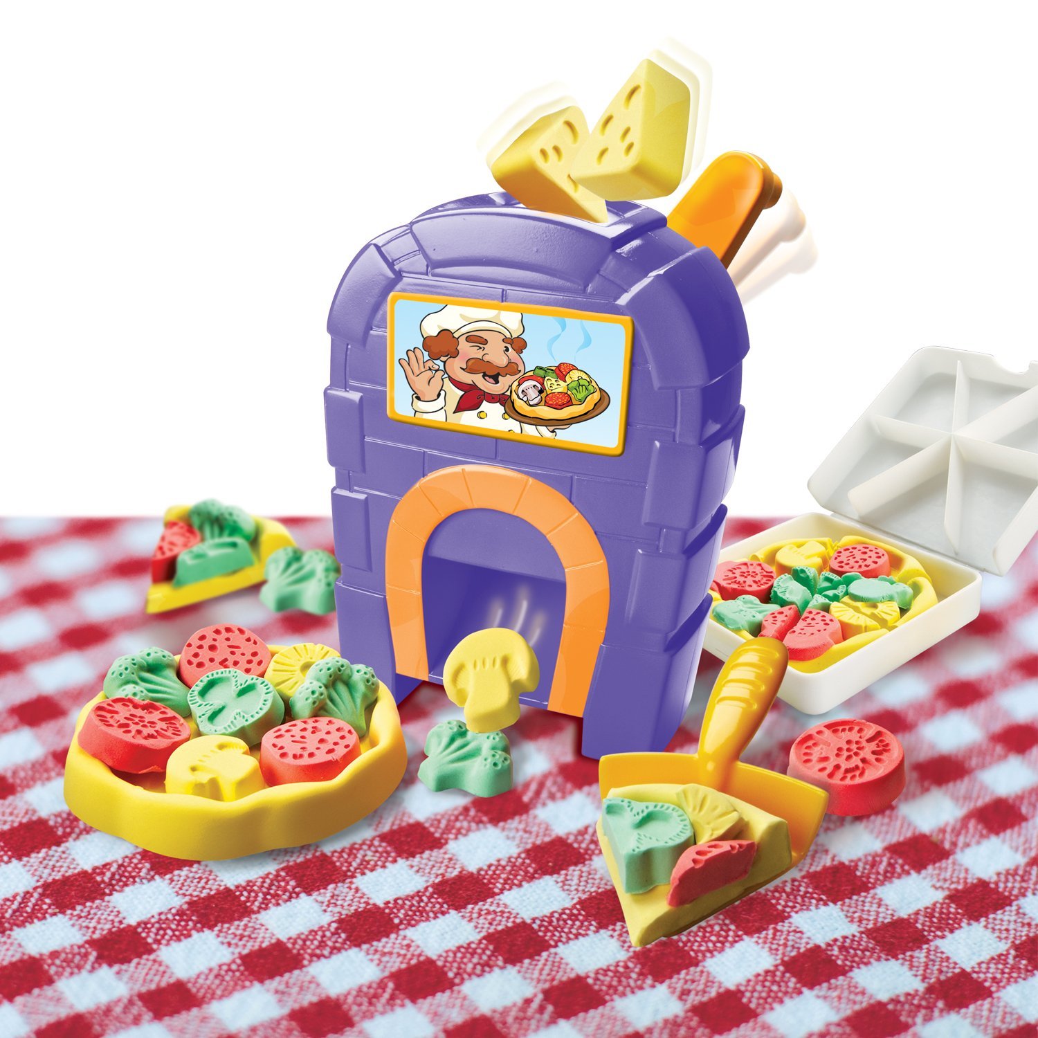 Điểm nhấn thú vị, khiến các bé mê mẩn Moon Dough - Pizza Shop chính là ở những công cụ kì diệu với tính năng sử dụng thông minh, đem lại bất ngờ cho bé. Với thiết kế độc đáo, khuôn tạo đồ ăn được thiết kế như một lò bếp có trục quay đằng sau, các khuôn dùng tạo hình rau củ quả được đặt ở trên cùng, khi cần tạo hình, bé lựa chọn màu sắc, đặt vào khuôn nén chặt, rồi quay trục, đồ ăn được tạo sẽ tự động chui xuống theo đường ống khói và xuống bếp ăn.