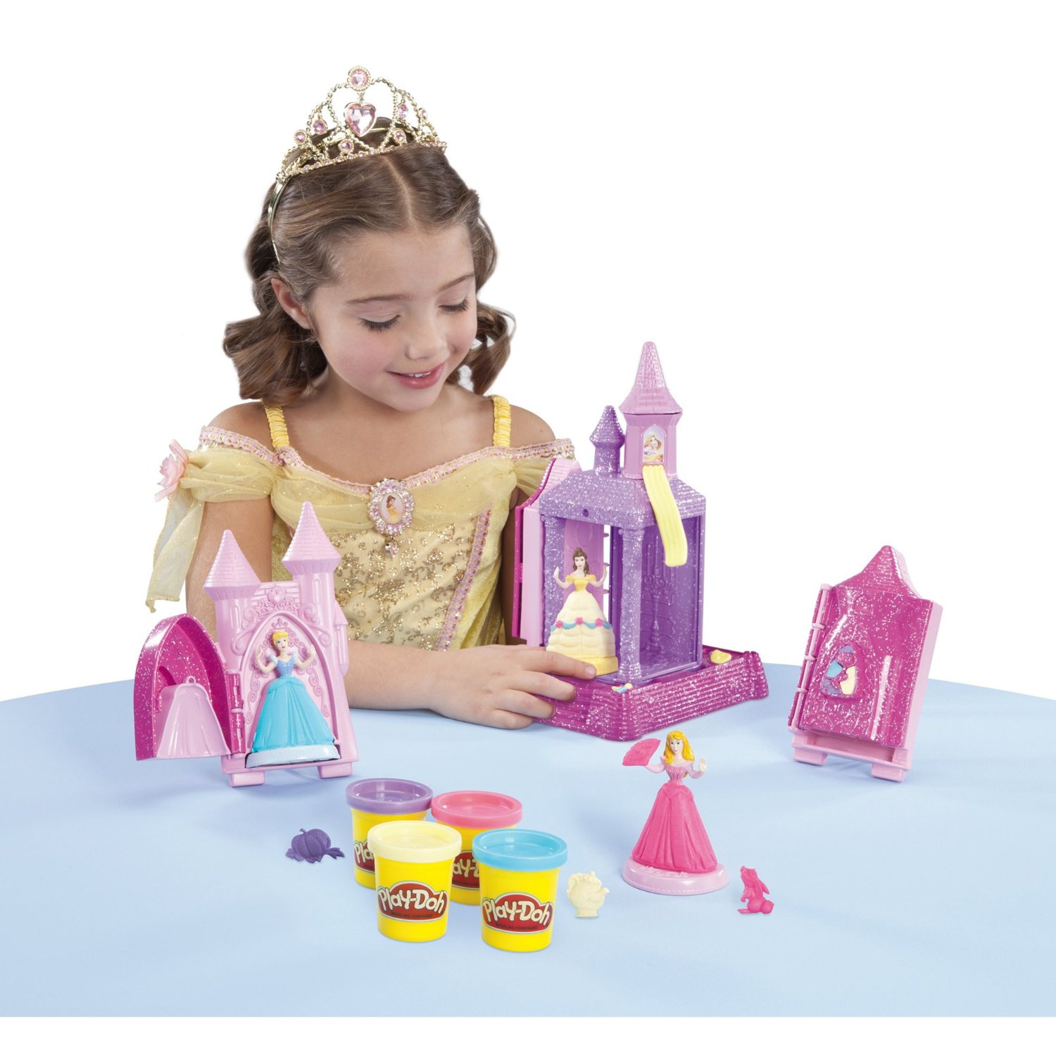 Play-Doh Disney Prettiest Princess Castle Playset là một tòa lâu đài xinh xắn với 4 cánh cửa kì diệu, ở đó có 3 nàng công chúa xinh đẹp đang chờ đợi bé thiết kế những chiếc váy lộng lẫy để đi dự tiệc. Dụng cụ hỗ trợ bé là 6 lon hợp chất bột nặn trong đó có 1 lon hợp chất lấp lánh giúp tạo các chi tiết trang trí nổi bật, các khuôn tạo hình trang trí được tích hợp sẵn trong lâu đài và bệ đứng của các nàng công chúa.