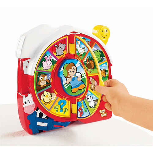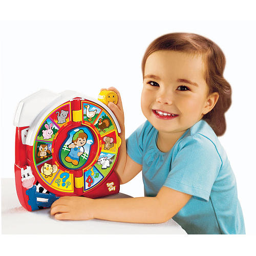 Bộ đồ chơi nhà kho vui nhộn Fisher Price là loại đồ chơi giáo dục với cách chơi đơn giản nhưng lại vô cùng thú vị. Bé chỉ cần quay mũi tên vào con vật mình yêu thích rồi kéo cần gạt, bác nông dân sẽ mô tả tiếng kêu của chúng. Giống như 1 khu nhà kho vui nhộn, bộ đồ chơi có rất nhiều con vật cho bé lựa chọn như: vịt, thỏ, mèo, cú, bò, chuột, công, ếch, gà...được xếp theo hình vòng tròn và có tên tiếng anh của chúng bên dưới hình ảnh mỗi con vật. Bé có thể lật trang để chọn thêm nhiều hơn nữa những con vật ngộ nghĩnh. Với sản phẩm này, bé vừa có thể vui chơi lại vừa nghe được tiếng kêu và học được tên tiếng anh của rất nhiều loài động vật. Đây quả là một bộ đồ chơi giáo dục thật bổ ích cho bé yêu của bạn.