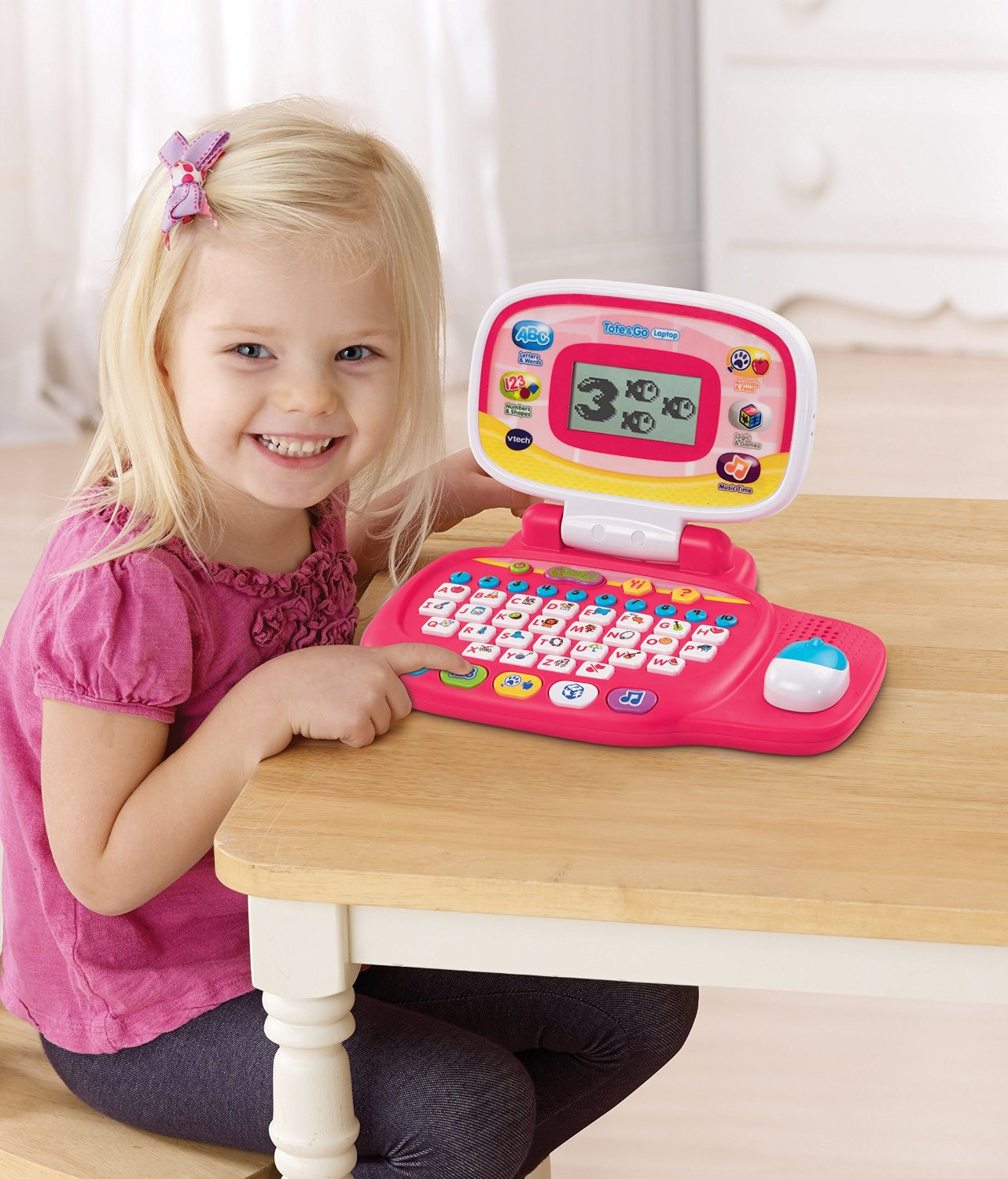 Vtech Tote & Go Laptop là một chiếc máy tính xách tay được thiết kế với những tính năng dành riêng cho trẻ em, Với một bàn phím đầy đủ các chữ cái với các nút được thiết kế khoa học dễ dàng cho bé sử dụng, lựa chọn các tính năng khác nhau có trong máy tính. Trên bàn phím có một nút nguồn để bảo vệ cho tuổi thọ của pin, nút điều chỉnh âm lượng với 3 mức âm thanh khác nhau, 6 nút có hình vẽ minh họa để bé có thể ghi nhớ và truy nhập vào các mục kiến thức bé muốn như: âm nhạc, game logic, chữ cái, hình học, con số… Một chuột điều khiển ngộ nghĩnh được đi kèm với chiếc máy tính để bé dễ dàng điều khiển click vào những nội dung bé muốn hiện trên màn hình. Vtech Tote & Go Laptop cũng được thiết kế tiện dụng có tay cầm để bé dễ dàng xách theo khi di chuyển.