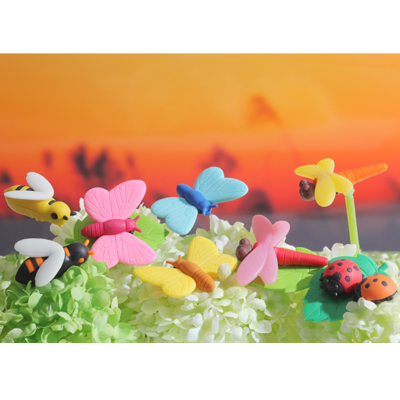 Những cục tẩy không chỉ đơn thuần là một dáng hình học cơ bản, hay những chữ số thông thường, nhà sản xuất đã vô cùng sáng tạo khi lựa chọn cho sản phẩm một hình dáng của các loại côn trùng dễ thương vô cùng: chuồn chuồn, bươm bướm, ong, bọ cánh cứng. Mỗi loại lại thêm những sắc màu rực rỡ, tươi sáng khác nhau hấp dẫn vô cùng.