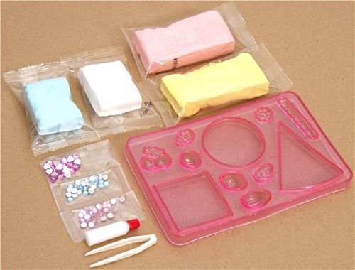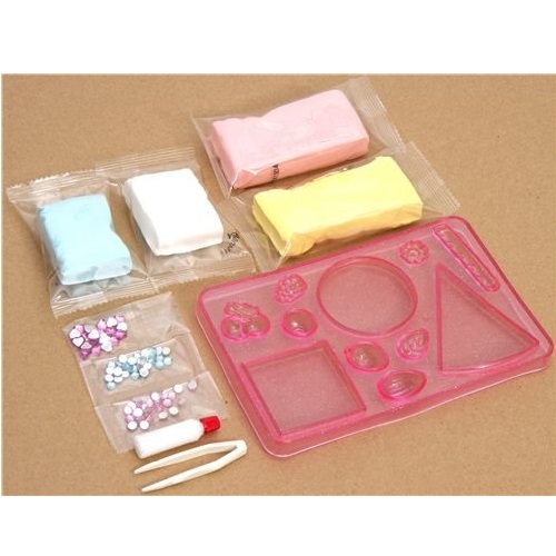 Bộ sản phẩm gồm những mộ bộ dụng cụ phong phú để giúp bé có thể làm ra những chiếc bánh kem, bánh quy với màu sắc cực đẹp như: 1 túi hạt trang trí lấp lánh và keo dán đi kèm; 4 viên bột nặn màu hồng, trắng, xanh, vàng; một máy ép khuân, đi kèm các khuân tạo hình sao, răng cưa; 1 khuân tạo bánh kem; 1 khuân tạo bánh quy, 1 khuân tạo kem, 1 khuân tạo hình hoa, lá trang trí; 1 kẹp nhíp; 1 bảng hướng dẫn chi tiết bằng hình vẽ mô tả các bước.