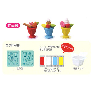 Bộ sản phẩm bao gồm tất cả những công cụ đầy đủ và cần thiết để hỗ trợ bé một cách tốt nhất trong quá trình nặn và làm những cục tẩy như: 01 sách hướng dẫn bằng tiếng Nhật và hình vẽ, thêm nữa có kèm các mảnh ghép cắt ra để làm phần lót ly kem; 01 hộp nặn bao gồm 4 viên với 4 màu: xanh da trời, vàng, trắng đỏ; 01 hộp giấy với chất liệu đặc biệt có thể đựng nước, 01 khay với 2 mảnh ghép trong đó thiết kế khuân hình dạng các loại để có thể trang trí cho ly kem trông thật ngon mắt: ly đựng kem,bánh quế, quả dâu tây, kem tươi, chiếc lá, trái tim..