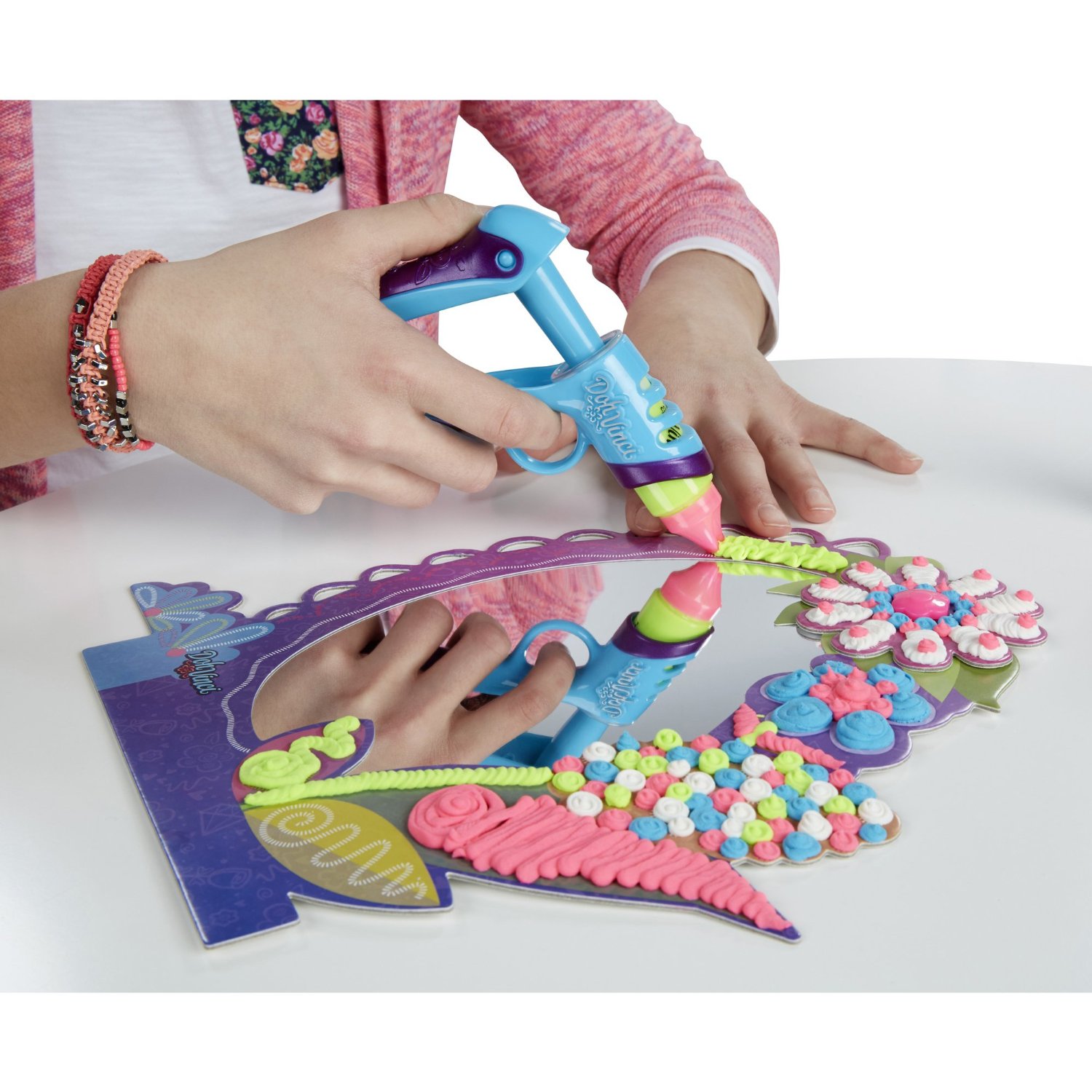 Điều thu hút sự thích thú đến mê mẩn của các bé với bộ sản phẩm này đó chính là được tự tay làm ra một chiếc bàn trang điểm lung linh để dùng trong phòng của chính mình, chỉ với vài bước đơn giản, bé sẽ sở hữu cho mình một món đồ dùng hữu ích và xinh xắn. Đầu tiên, bé sẽ lựa chọn màu sắc muốn vẽ, lắp vào thân súng, bóp cò súng vẽ để tạo hình 3D lên bông hoa, gương, viền hộp đựng đồ, mèo cho chúng thêm sinh động, bắt mắt. Sau đó bé sẽ tiến hành sắp xếp tất cả các chi tiết lại để tạo hình bàn trang điểm trở nên lung linh hơn.