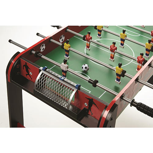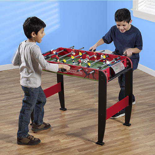 Bộ đồ chơi được thiết kế giống như một trận bóng đá thu nhỏ trong sân, gồm 2 đội bóng màu vàng và màu đỏ. Mười hai cầu thủ sẽ được gắn chặt với một thanh điều khiển bắc ngang qua bàn. Vị trí 2 đội được sắp xếp so le với nhau. Với bộ đồ chơi này bé có thể tập chơi một mình, hay chơi cùng với một người bạn để tạo nên sự kịch tính và hấp dẫn cho trận đấu. Các game thủ tí hon của chúng ta sẽ điều khiển trận đấu thông qua thanh điểu khiển đó. Tham gia trò chơi này đòi hỏi sự phối hợp nhịp nhàng giữa tay, mắt, cơ thể thậm chí là cả các chiến thuật chơi. Bé sẽ được rèn luyện kĩ năng phản xạ nhanh cho cả 2 tay trái và phải , đẩy ngang gậy để truyền bóng giữa các cầu thủ trong đội, xoay gậy để truyền bóng cho đồng đội và tiến lên tấn công khung thành của đối thủ. Bé sẽ đóng vai trò như những người điểu khiển một trận đấu bóng cực kì gay cấn sử dụng tay cầm điều khiển thuần thục để truyền bóng, tấn công hay phòng thủ một cách chính xác, chặt chẽ. Một trận đấu của trí tuệ, kĩ năng, sự nhanh nhạy, tập trung sẽ làm nên chiến thắng xứng đáng!