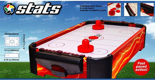 Là môn thể thao có từ lâu đời, Khúc côn cầu được biết đến rất nhiều trong các thế vận hội thể thao, trong đó hai đội thi đấu với nhau bằng cách cố gắng điều khiển một quả bóng hay một đĩa tròn và cứng, gọi là bóng khúc côn cầu, vào trong lưới hay khung thành của đội kia, bằng gậy chơi khúc côn cầu. Dựa trên luật thi đấu, và mô phỏng trò chơi này, bộ đồ chơi thể thao Stats 16 inch Air Hockey được thiết kế dành cho 2 người chơi, dùng tay điều khiển 1 núm tròn có tay cầm để đẩy, đá, quét chiếc đĩa nhựa theo nhiều cách khác nhau tấn công vào khung thành của đối phương. Với kích thước nhỏ gọn dễ dàng đặt ở mọi góc nhà, chiếc bàn này không có chân đi kèm nên tiện lợi cho việc di chuyển và mang theo trong các chuyến du lịch, píc ních.