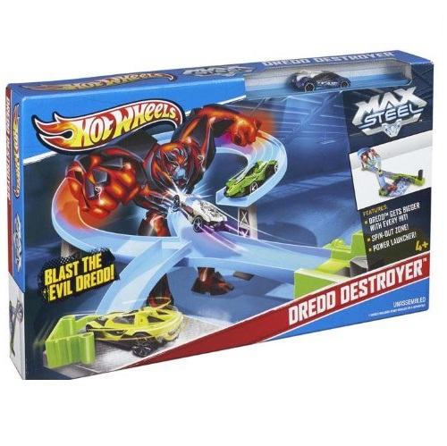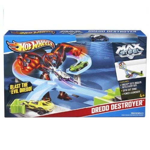 Lấy cảm hứng từ sê ri bộ phim hoạt hình khoa học viễn tưởng cực hấp dẫn dành cho trẻ em, Hot Wheels Max Steel Dredd Trackset tái hiện hoành tráng lại cảnh tượng trong phim chiến binh ngoài hành tinh: cuộc đối đầu kịch tính giữa anh hùng Max Steel và Dredd.