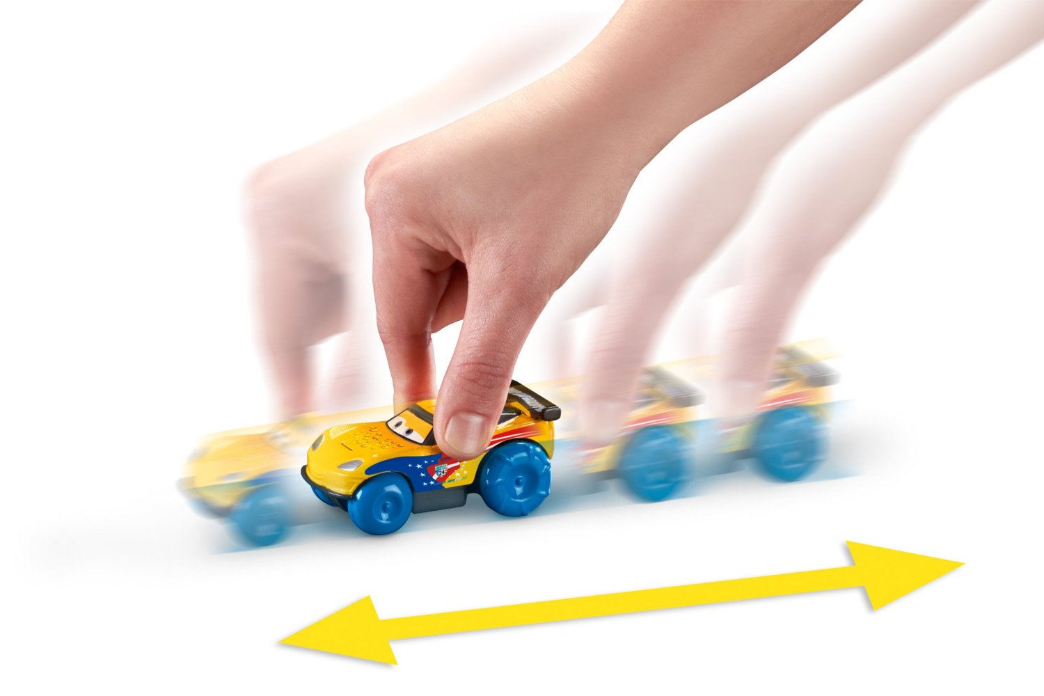 Khi muốn xe di chuyển trên mặt đất, hay dưới nước, bé chỉ cần kéo bánh xe ngược lại để có thể đạt tới tốc độ siêu tốc, thả tay và chứng kiến những màn trình diễn đẹp mắt và đầy hứng thú.