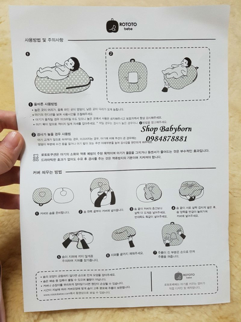 Thông tin chi tiết về Gối cho bé ăn, chống trào ngược, gối ngủ cho bé Rototo Bebe Hàn Quốc dáng tròn:
