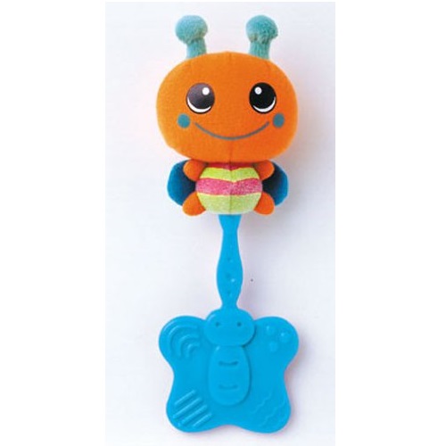 Các chi tiết đều được phối màu sắc sặc sỡ, kích thích thị giác của trẻ. Phần hình chú bướm được làm bằng chất liệu nhựa dẻo cao cấp có tính đàn hồi để bé có thể nhai ngậm, không chứa BPA hay các chất gây hại khác, trên bề mặt có các hạt sần giúp mát xa phần nướu và làm giảm cảm giác khó chịu của bé khi mọc răng. Đồng thời, những hạt nhựa được đặt bên trong thú tạo ra tiếng kêu lách cách vui tai khi được rung lắc, cắn tạo cho bé sự thích thú và kĩ năng phản xạ với âm thanh.