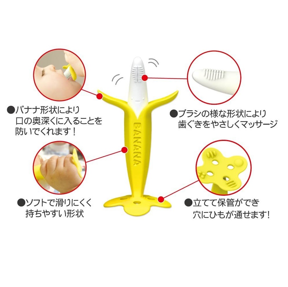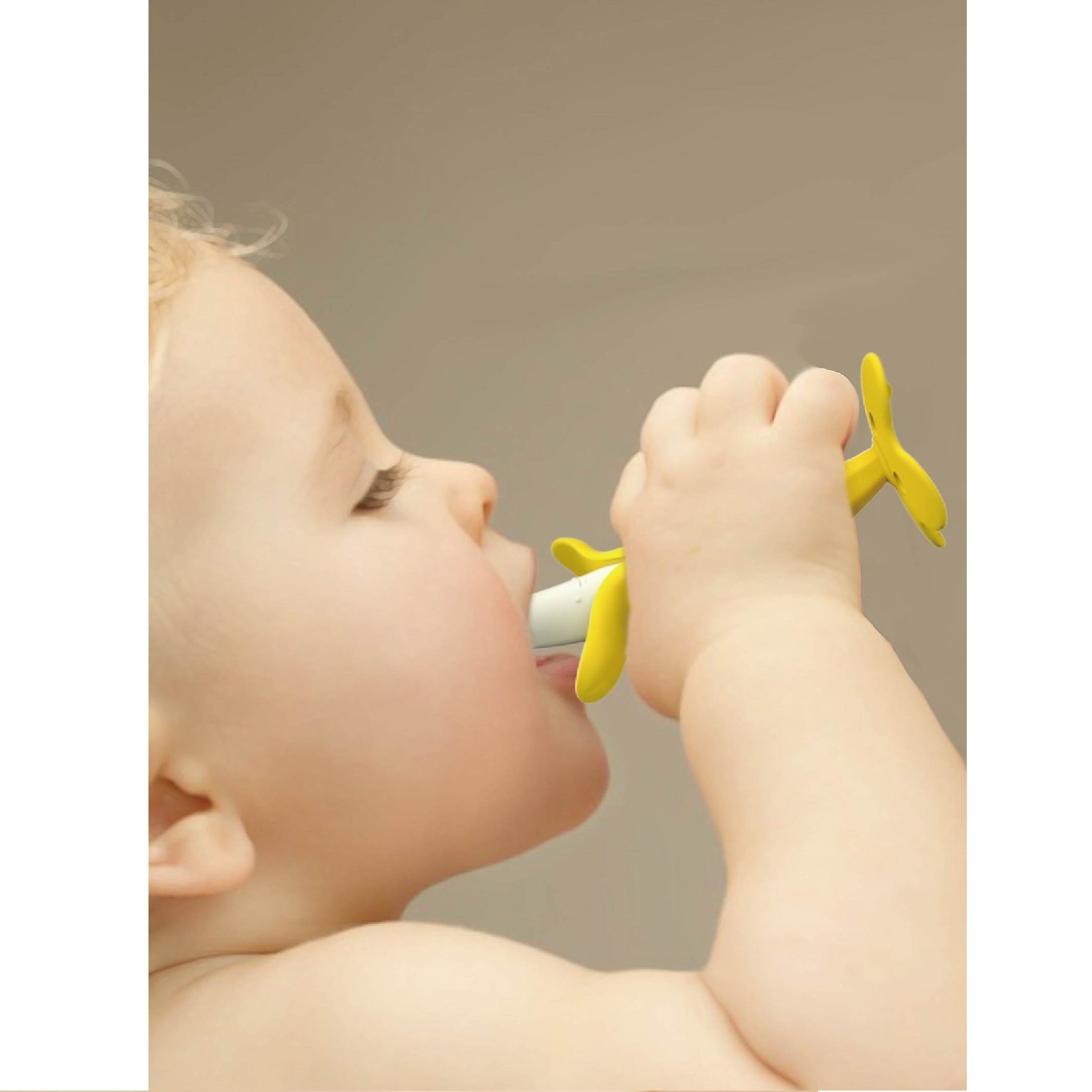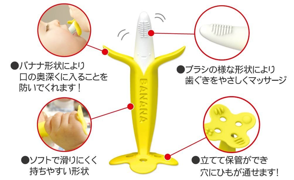 Với hình dạng quả chuối màu vàng dễ thương rất cuốn hút bé, có kích thước chiều dài như một chiếc bàn chải sẽ nhẹ nhàng xoa bóp nướu, làm giảm các cơn đau ngứa của bé.