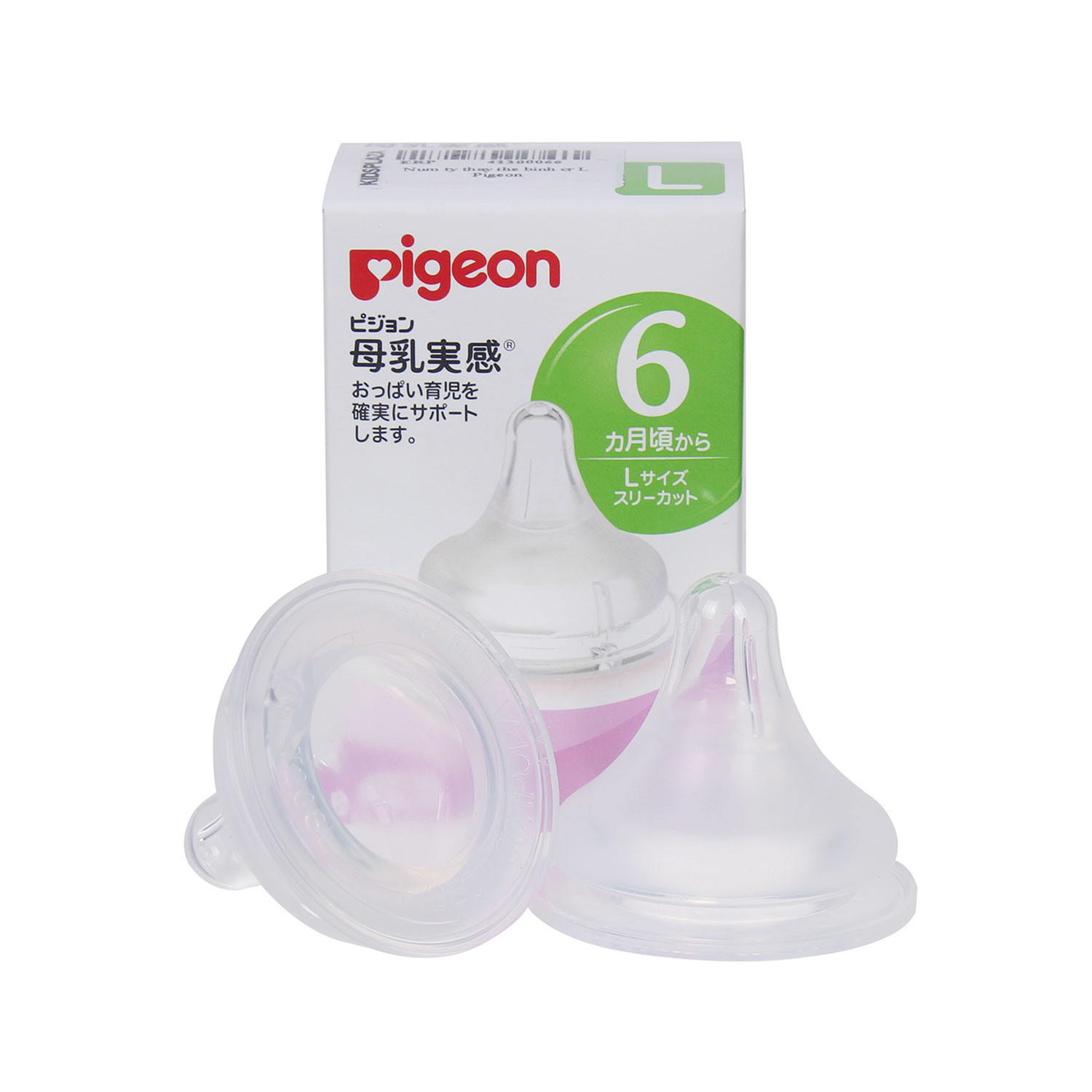 Núm ti cổ rộng Pigeon size L Nhật Bản- Dành cho trẻ 6 tháng- Set 2