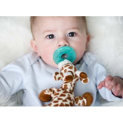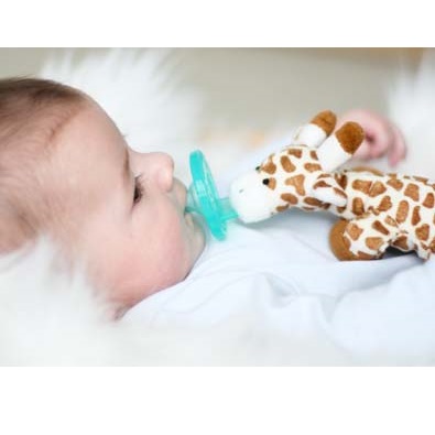WubbaNub Giraffe là chiếc núm vú với hình chú hươu cao cổ mềm mại, có kích thước phù hợp với bàn tay bé để bé có thể dễ dàng cầm nắm. Thiết kế được cấp bằng sáng chế phòng trừ núm vú không bị mất, bị bỏ rơi, hoặc quên. Núm vú được làm bằng một lớp silicone y tế hoàn hảo ngay với cả những bé bị dị ứng với mủ cao su, thiết kế thành một khối liền mảnh, không có các khe hở để vi trùng chú ẩn và giữ cho núm vú được sạch sẽ. Đặc biệt an toàn cho bé vì không chứa BPA, BPV, PHTHALATE. Hơn thế nữa, trọng lượng và kích thước của thú nhung được tính toán cẩn thận giữ cho núm vú ở gần miệng bé ở mọi vị trí nằm, ngồi, trên xe đẩy, trên tàu…Chú hươu cao cổ giúp cho bé dễ dàng nắm bắt núm vú mang đến cho bé sự thoải mái, nhẹ nhàng mang đến cho bé một giấc ngủ ngon. Sản phẩm có thể giặt bằng tay hoặc bằng máy.