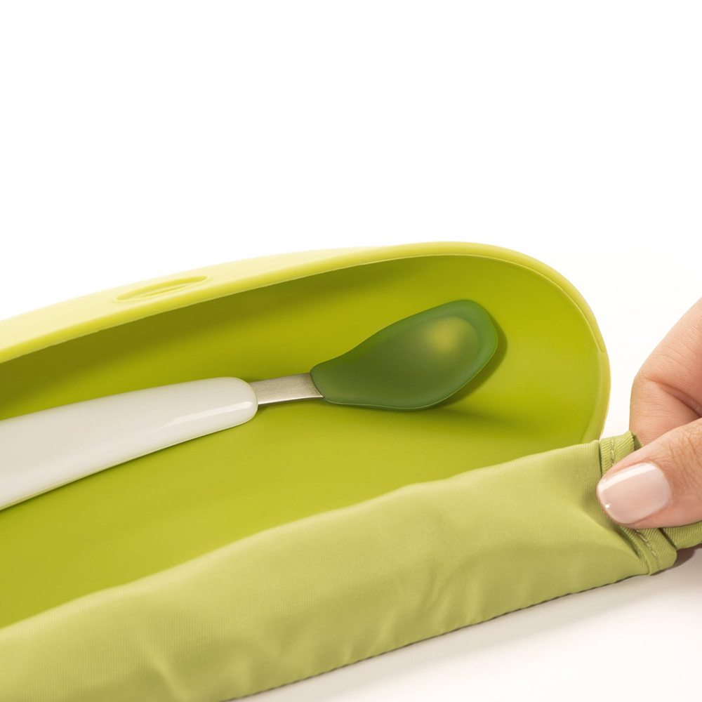 Được thiết kế cho trẻ em sáu tháng tuổi trở lên, mỗi thìa được làm bằng thép không gỉ và có màu xanh lá cây tươi sáng silicone. Chiếc thìa ăn cho bé của OXO có cấu tạo thích hợp với nướu và răng đang phát triển của bé. Bên ngoài thìa được bọc một lớp silicone cho bé một cảm giác mềm mại, giúp bảo vệ răng miệng của bé tránh bị tổn thương. Bề mặt thìa có cấu tạo nông, nhỏ để tránh đưa lượng thức ăn quá nhiều vào miệng bé trong một lúc. Các góc thìa được xử lý bo tròn mềm mại dùng quén sạch sẽ những miếng bột cuối cùng từ bát, bạn cũng có thể yên tâm khi dùng thìa lau thức ăn trên mặt của em bé của bạn an toàn và thoải mái.