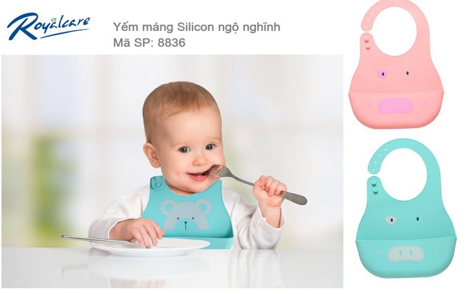 Yếm máng ăn dặm Royalcare cho bé - Cao Su Mềm