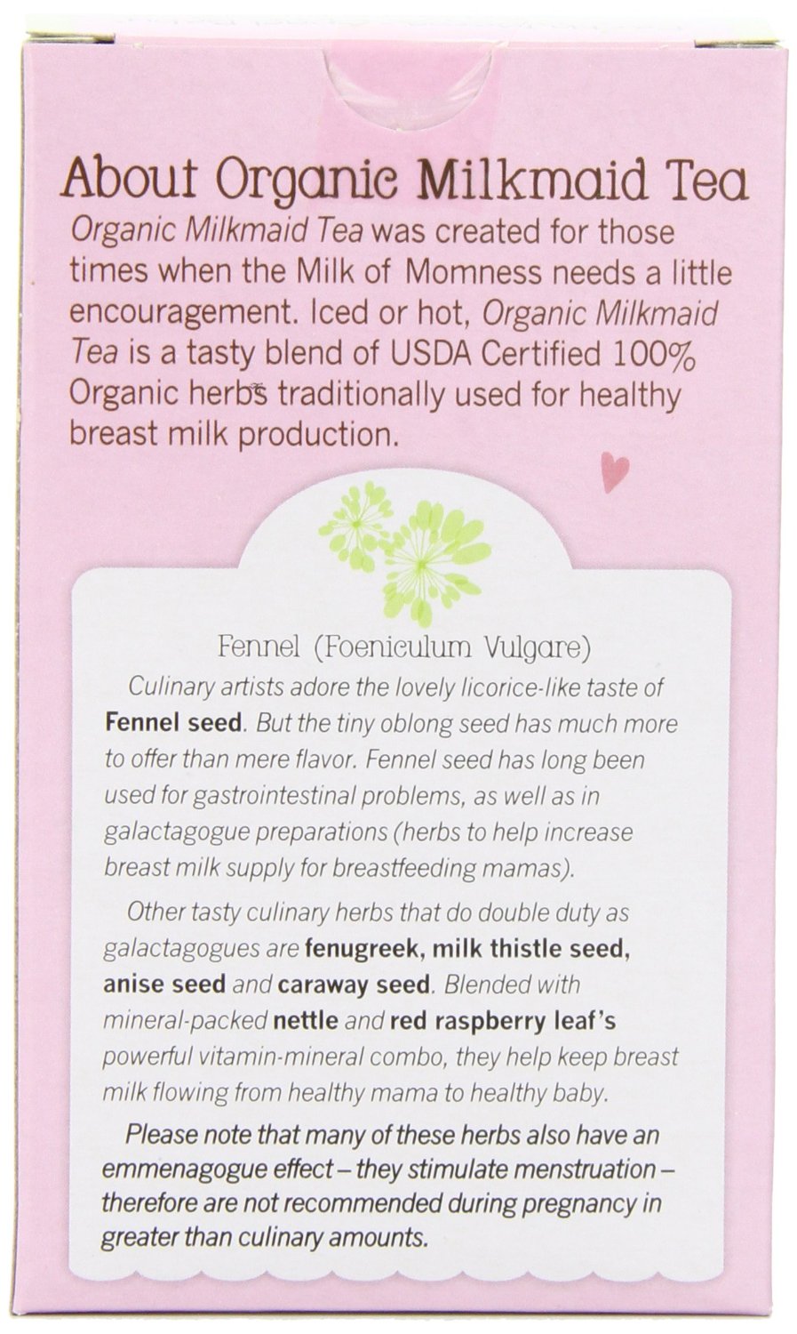 Sữa mẹ là thức ăn tốt nhất cho sức khỏe và sự phát triển toàn diện của trẻ, hơn nữa cho con bú là một việc làm thiêng liêng, thể hiện sự kết nối yêu thương của tình mẫu tử. Thế nên hiện tượng thiếu sữa cho bé bú là mối lo lắng hàng đầu của nhiều bà mẹ. Thấu hiểu được vấn đề đó, Earth Mama Angel Baby đã sáng tạo ra sản phẩm trà thảo mộc lợi sữa Earth Mama Angel Baby Organic Milkmaid Tea. Sản phẩm được chứng nhận 100% hữu cơ bởi USDA.