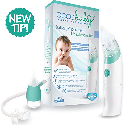 OCCObaby Baby Nasal Aspirator - Safe Hygienic and Quick Battery Operated Nose Cleaner with 3 Sizes of Nose Tips and Oral Snot Sucker for Newborns and Toddlers (Limited Edition)