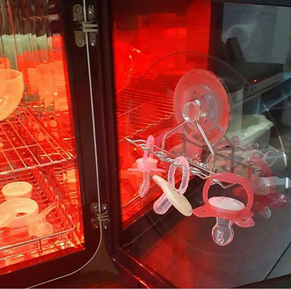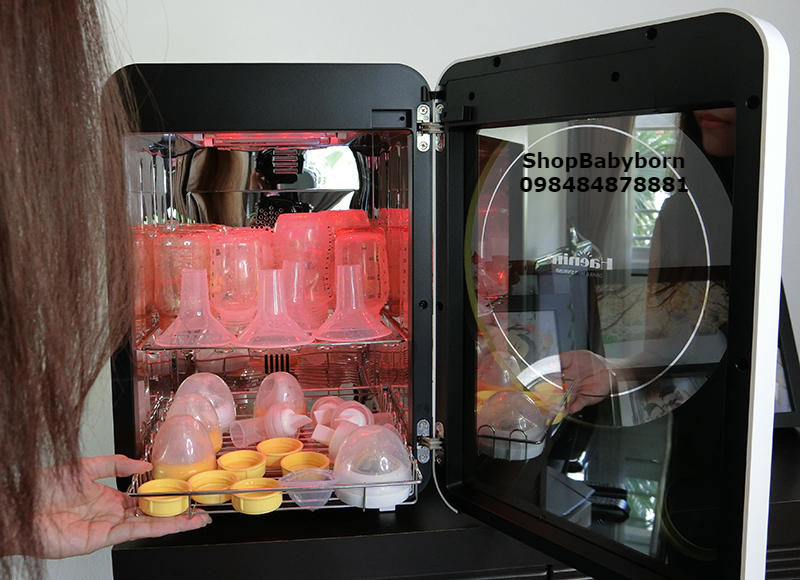 Hiệu quả và tiện lợi. Không cần phải nạp nước vào máy tiệt trùng. Máy hoạt động như một chức năng kép của khử trùng và sấy khô. Vì vậy, chúng ta không cần phải lo lắng về nấm mốc và vi khuẩn phát triển trong môi trường ẩm ướt. Tất cả những gì bạn cần làm sau khi giặt, là lắc hết nước dư thừa và đặt chúng đứng thẳng trong máy tiệt trùng, với các chai mở ra hướng lên trên. Lắc nước dư thừa giúp làm khô ở chế độ chu trình nhanh hơn.