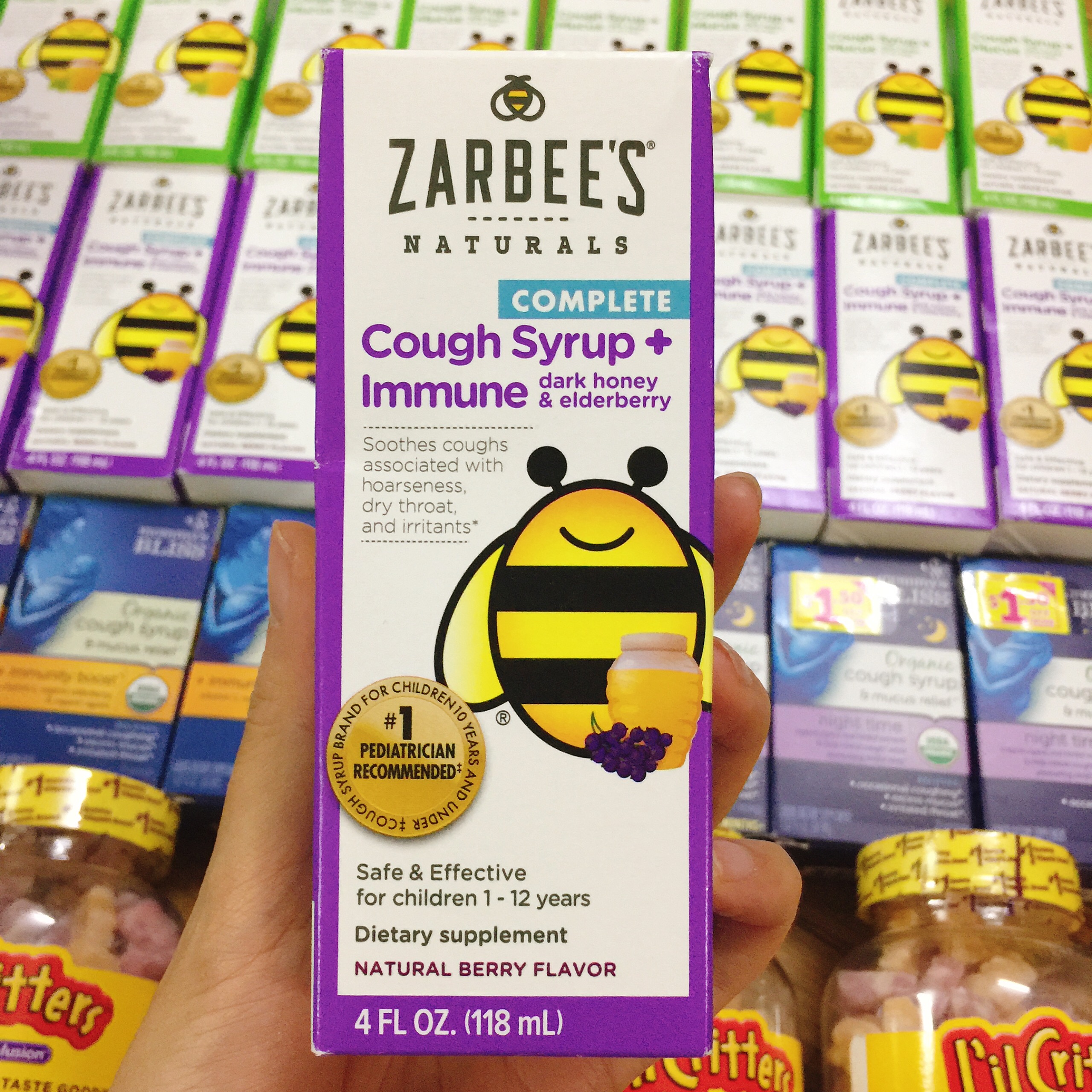 Mua Siro trị ho và tăng đề kháng với mật ong đen và elderberry, Zarbee’s Children Cough Syrup + Immune, cho trẻ trên 1 tuổi ở đâu thì tốt?