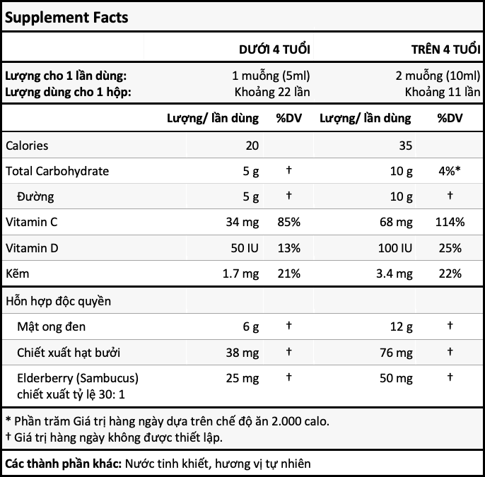 - Ngoài ra còn có: sugars, zinc, honeys, natural flavor, grapefruit sees extract, ctric acid.