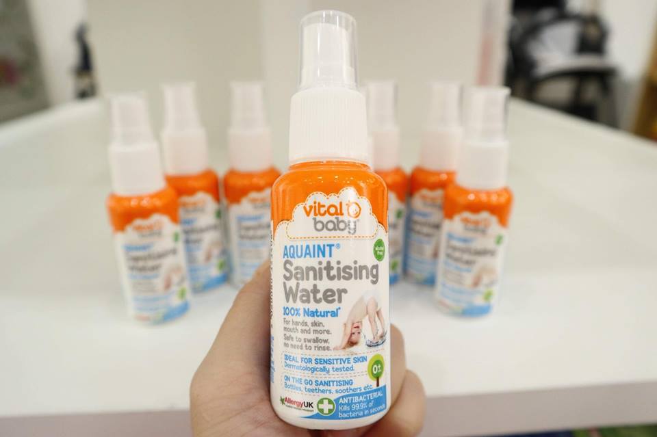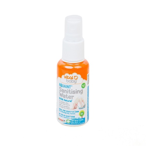 - Xịt toàn thân Vital Baby Aquaint Sanitising Water 50ml chống vi khuẩn, tiêu diệt 99,9% vi khuẩn.