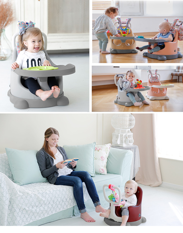 - Khay thức ăn được thay sau khi bé đã chơi đủ, cố định bé trong ghế để việc ăn uống trở thành niềm thích thú và bé sẽ tập trung tối đa (điều đặc biệt các bố mẹ hạn chế việc cho bé tiếp xúc với thiết bị công nghệ để bé có thể tự cảm nhận mùi vị của mỗi món ăn được tốt nhất, giúp tăng cường trí nhớ, khả năng phản xạ nhanh, có cảm xúc mãnh liệt với những đồ vật mới, ...)