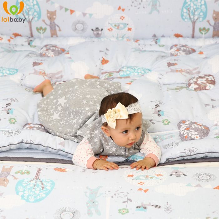 - Giường bumper chất liệu bên trong được làm từ bông vi sợi tổng hợp nên ít bị xô lệch hơn so với bông thông thường, có khả năng giữ nhiệt và co giãn tối ưu.