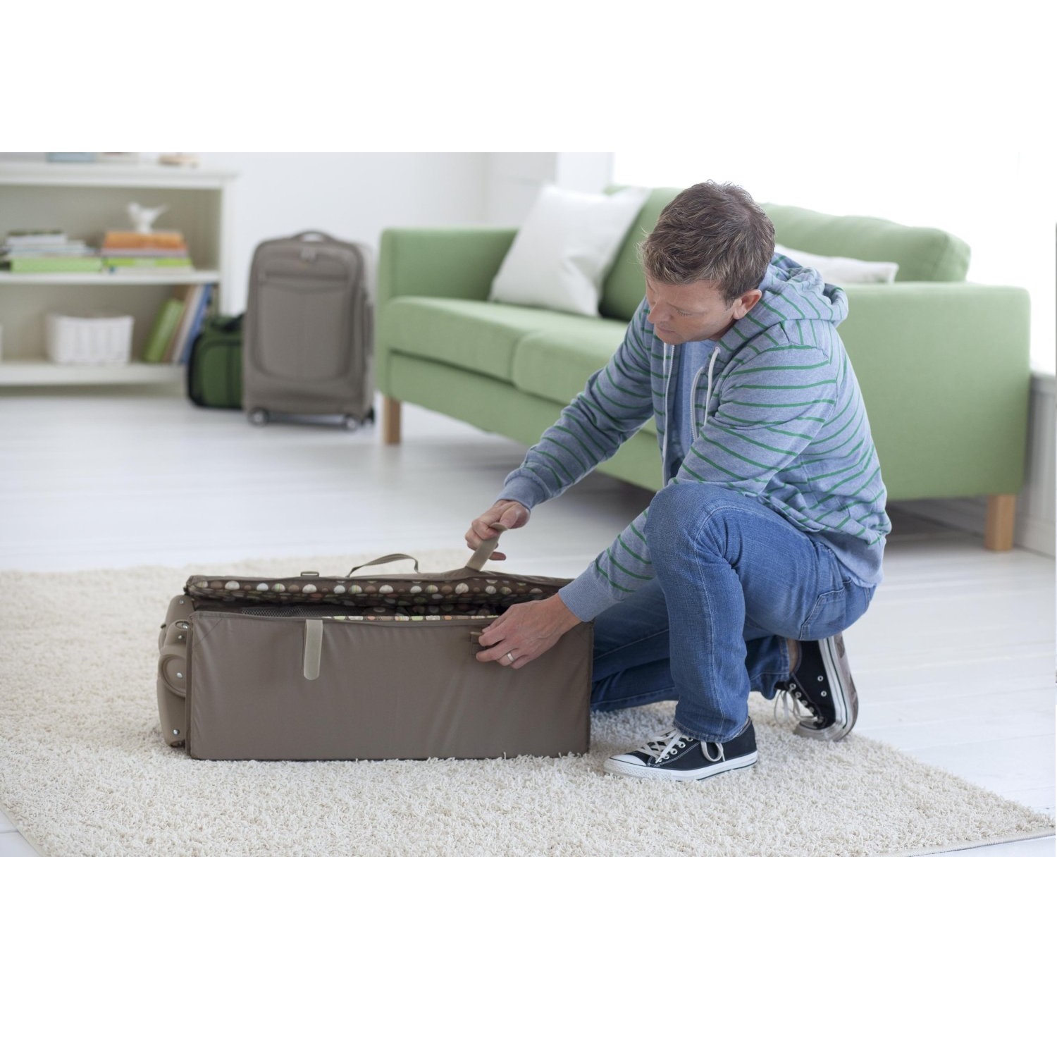 Khi bé yêu còn nhỏ, bạn có thể để bé lên chiếc nôi được lắp ráp đi kèm. Nôi được làm bằng vải vi lông cừu sẽ đem đến cho bé một cảm giác vô cùng mềm mại, thoải mái, dễ chịu cho làn da bé, tấm nệm bông sẽ giúp nâng đỡ đầu bé một cách êm ái. Để làm cho giấc ngủ thoải mái hơn, Newborn Napper có tính năng điều chỉnh tán che chắn cho đôi mắt của bé tránh khỏi ánh sáng.
