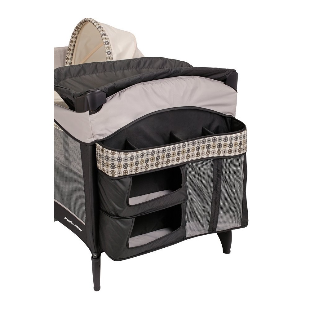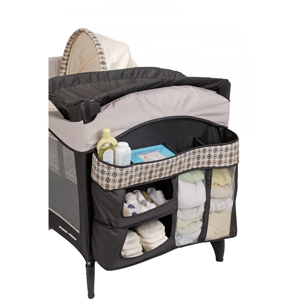 Thêm vào đó, Playard with Newborn Napper được các bà mẹ ưa thích bởi sự tiện lợi và tối giản của nó. Chiếc giỏ lớn đựng đồ siêu hữu ích bên cạnh thành giúp bạn có thể để tã lót, bỉm, khăn cho bé. ở đó có thiết kế các ngăn chứa đồ hoàn hảo, có thể tháo rời khi bạn không muốn dùng đến. Điều này giúp các bà mẹ tiết kiệm nhiều thời gian đi lại để lấy đồ cho bé.